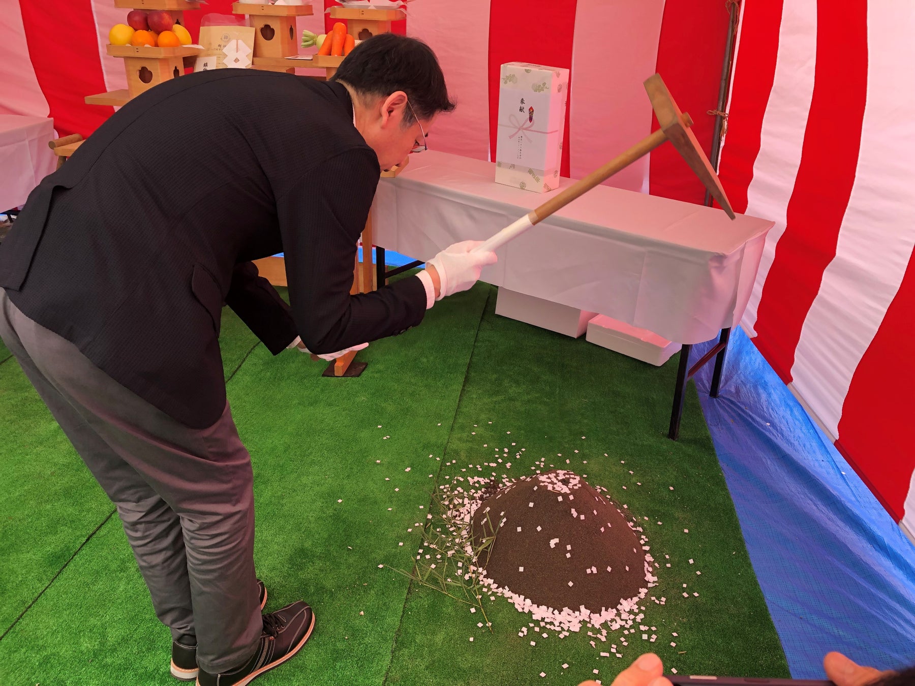 鍬入れの儀を行う株式会社Ginza取締役 栗田管理本部長