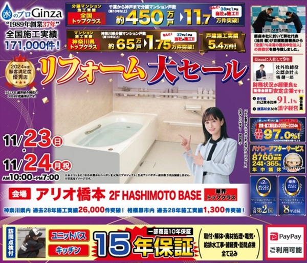 イベント会場:アリオ橋本【リフォーム大セール!】:11/23(日)~11/24(月・祝)