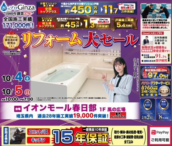 イベント会場:イオンモール春日部:10/4(土)~10/5(日):【リフォーム大セール!】
