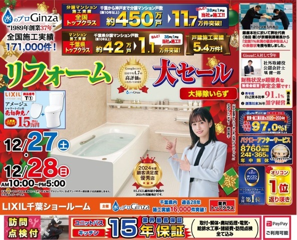 イベント会場:LIXIL千葉ショールーム:12月27日(土)~28日(日)【リフォーム大セール!】