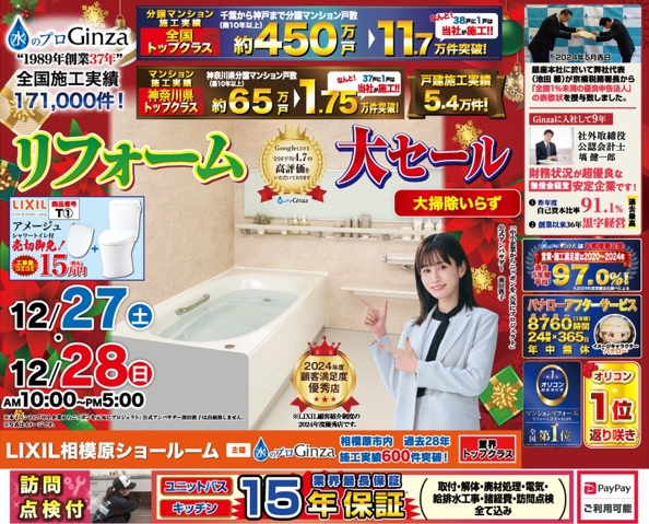 イベント会場:LIXIL相模原ショールーム:12/27(土)~28(日):【リフォーム大セール!】