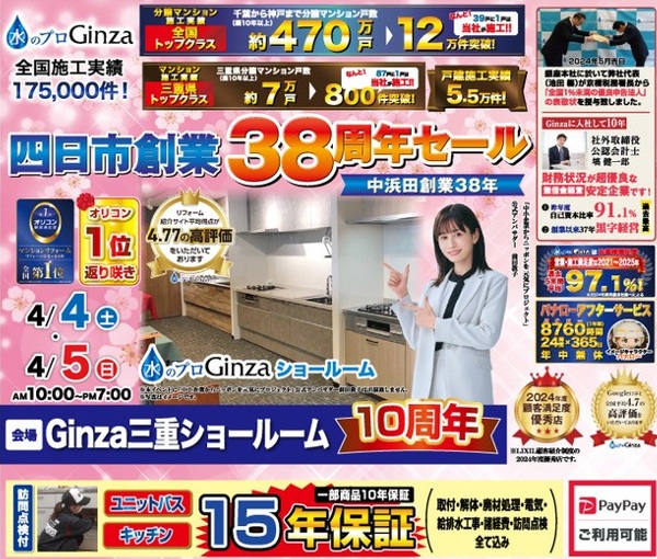 Ginza三重SR:【四日市創業38周年セール!】:4月4日(土)~5日(日)