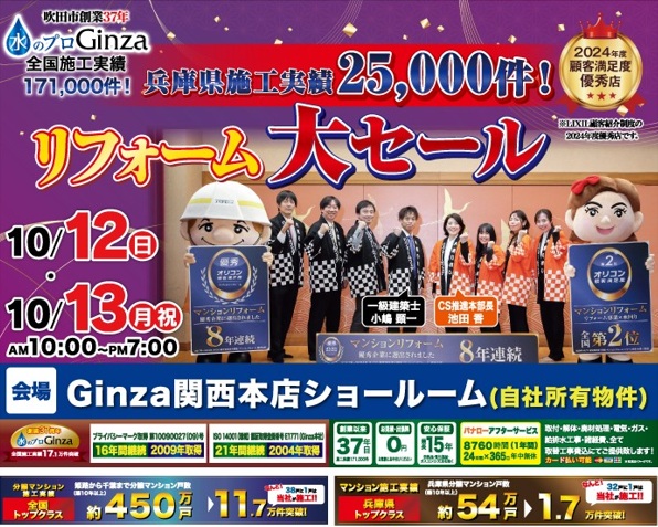 Ginza関西本店SR:10月12日(日)~13日(月・祝)【リフォーム決算大セール!】
